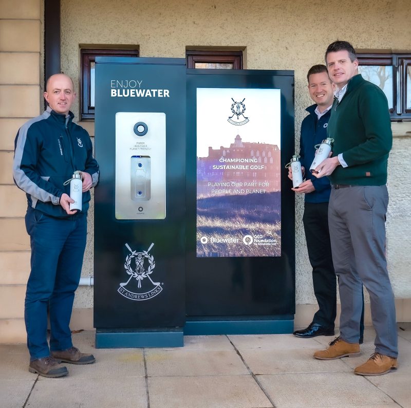 The first global venue to offer the purpose-driven new Bluewater bottles for retail sale is St Andrews Links. At the forefront of golf and sustainability, and retaining the GEO Certified® label for sustainable golf facility management for almost 15 years, St Andrews Links, the Home of Golf, has fully embraced Bluewater solutions to eliminate single-use plastics while providing premium refills year-round.