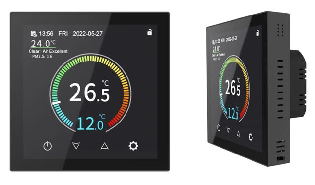 The thermostat’s sleek design reflects Rayotec’s commitment to functionality and aesthetic appeal. Unlike other fully touch screen thermostats that can be bulky and unsightly, the Coloursense’s slim, minimalistic design allows it to integrate flawlessly into any home décor, complementing modern living spaces. Feedback from customers highlights how futuristic the new thermostat looks compared to previous models.